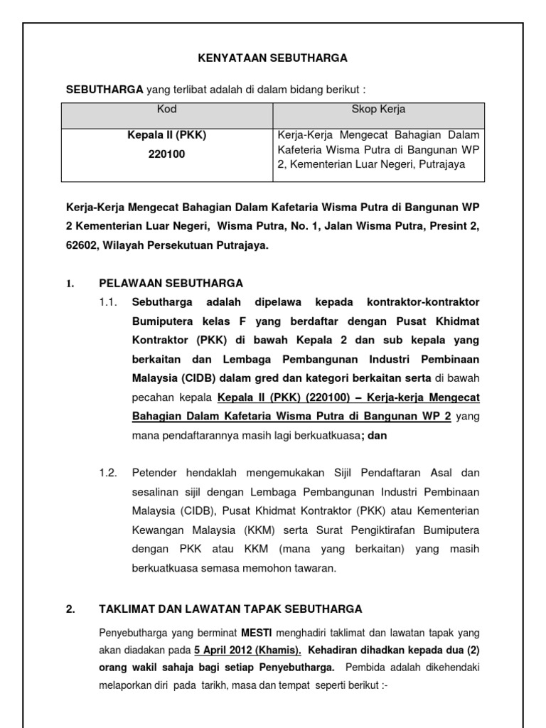 Sebut Harga Ubahsuai Rumah 2017 Pdf